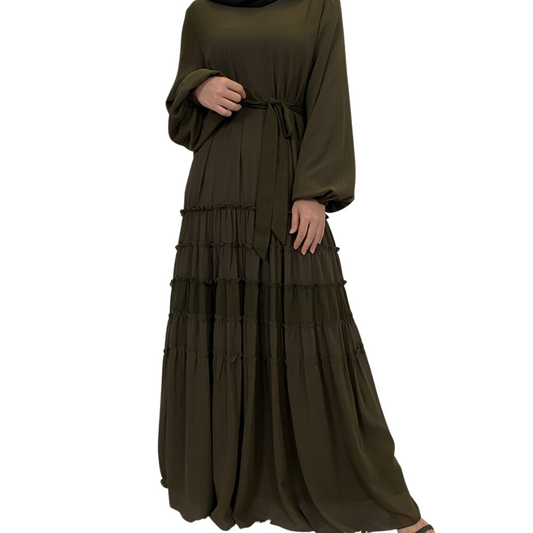 Elegant Ruffle Chiffon Maxi Dress Abaya